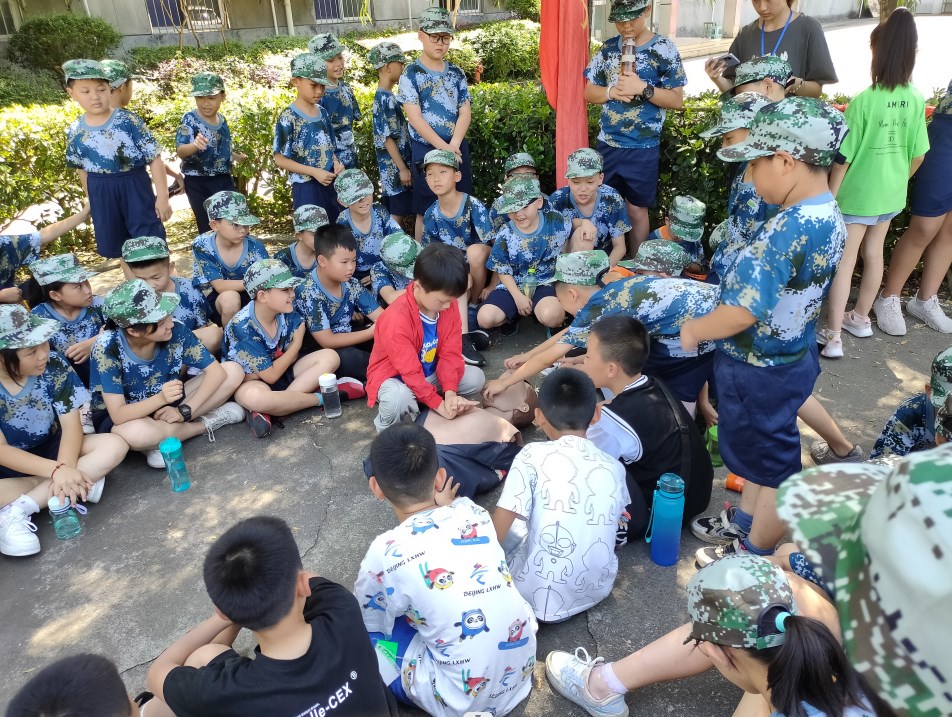 下午:急救知识特训:1.外伤紧急救护,2.伤病员搬下午:运技能;3.心肺复苏术;4.消防演练:5.地震逃生。