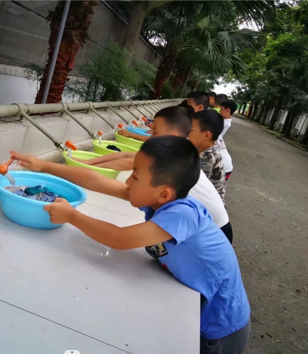 下午:素质拓展:沙场点兵;小兵自己动手洗衣服。